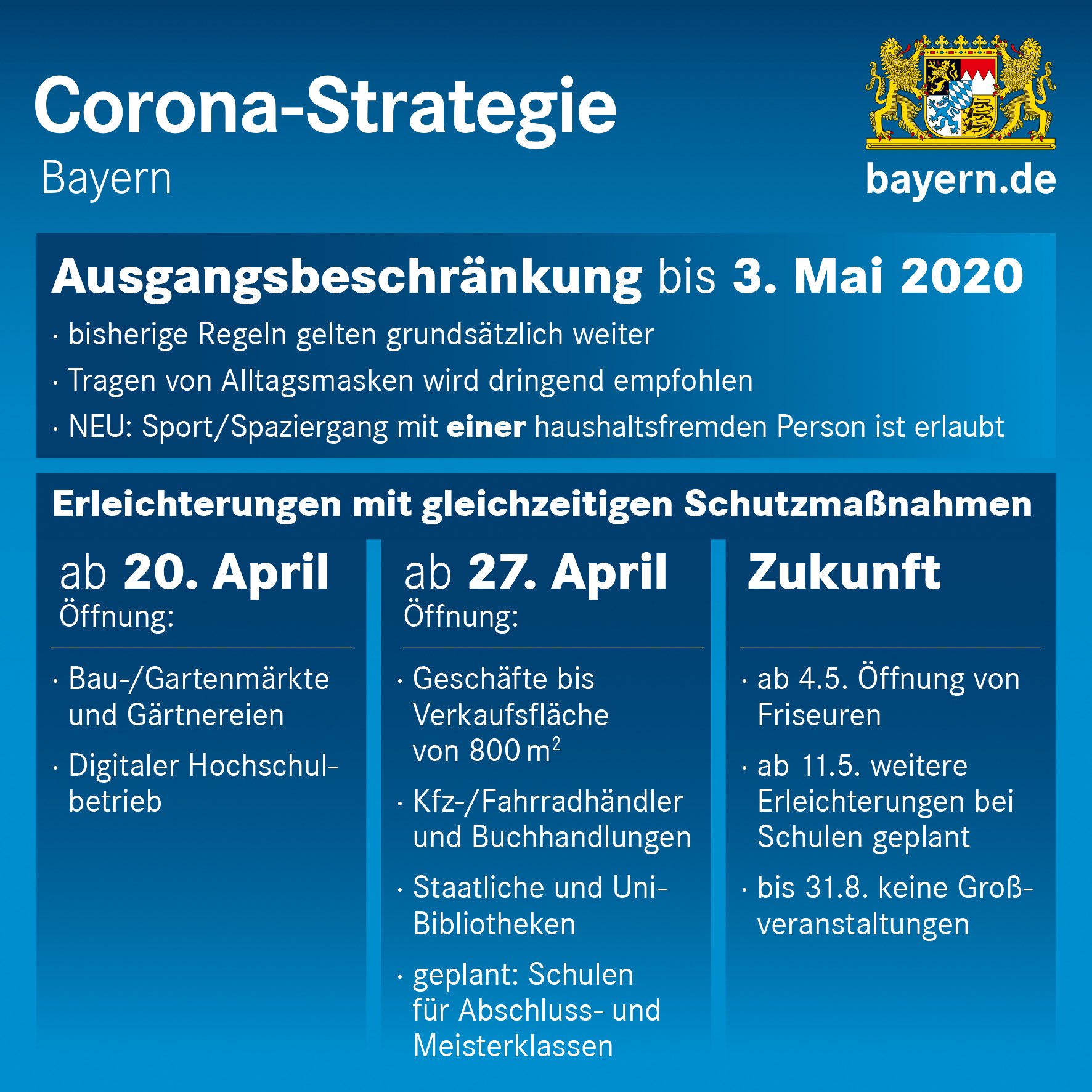 Markus Soder On Twitter Bayern Geht Behutsam Vor Ausgangsbeschrankung Bis 3 Mai Verlangert Aber Begleitung Einer Person Ausserhalb Der Familie Moglich Offnung Baumarkte Gartnereien Ab Montag Schulen Und Laden Bis 800qm Schrittweise Ab